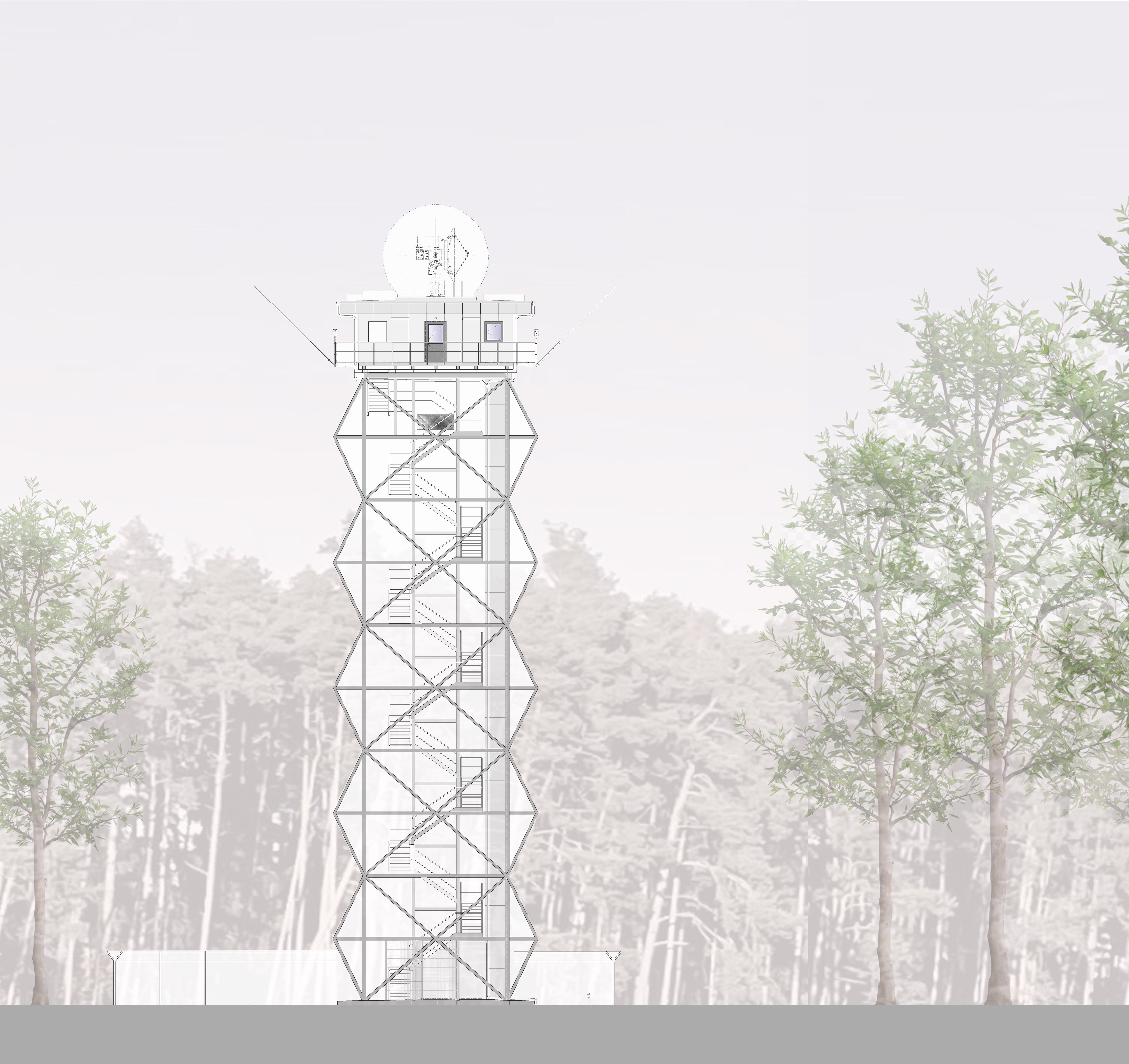 Auf dem bewaldeten Grundstück im Gemeindegebiet Petersaurach entsteht aktuell der Neubau des rd. 44 Meter hohen Wetterradarturms mit aufgesetzter Antennentechnik und der charakteristischen Radom-Kuppel. Im Frühjahr 2025 wurden die Medien Strom und Breitband verlegt. Das 11 m x 11 m große und 2 m tiefe Fundament ist fertiggestellt. Derzeit erfolgt die Montage der vorgefertigten Stahltragwerkskomponenten. Abschließend wird der Betriebsraum mit Antennentechnik auf das Stahltragwerk gehoben.